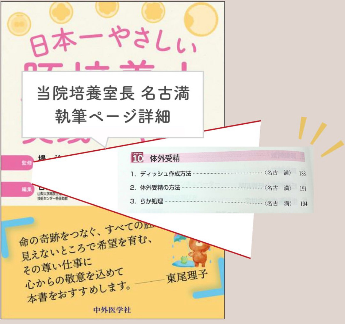2025.08.30 お知らせ ■メディア掲載情報 日本一やさしい胚培養士実践テキスト 当院の培養室長、名古満が『日本一やさしい胚培養士実践テキスト』にて執筆に参加しました。 PREV NEXT All Post